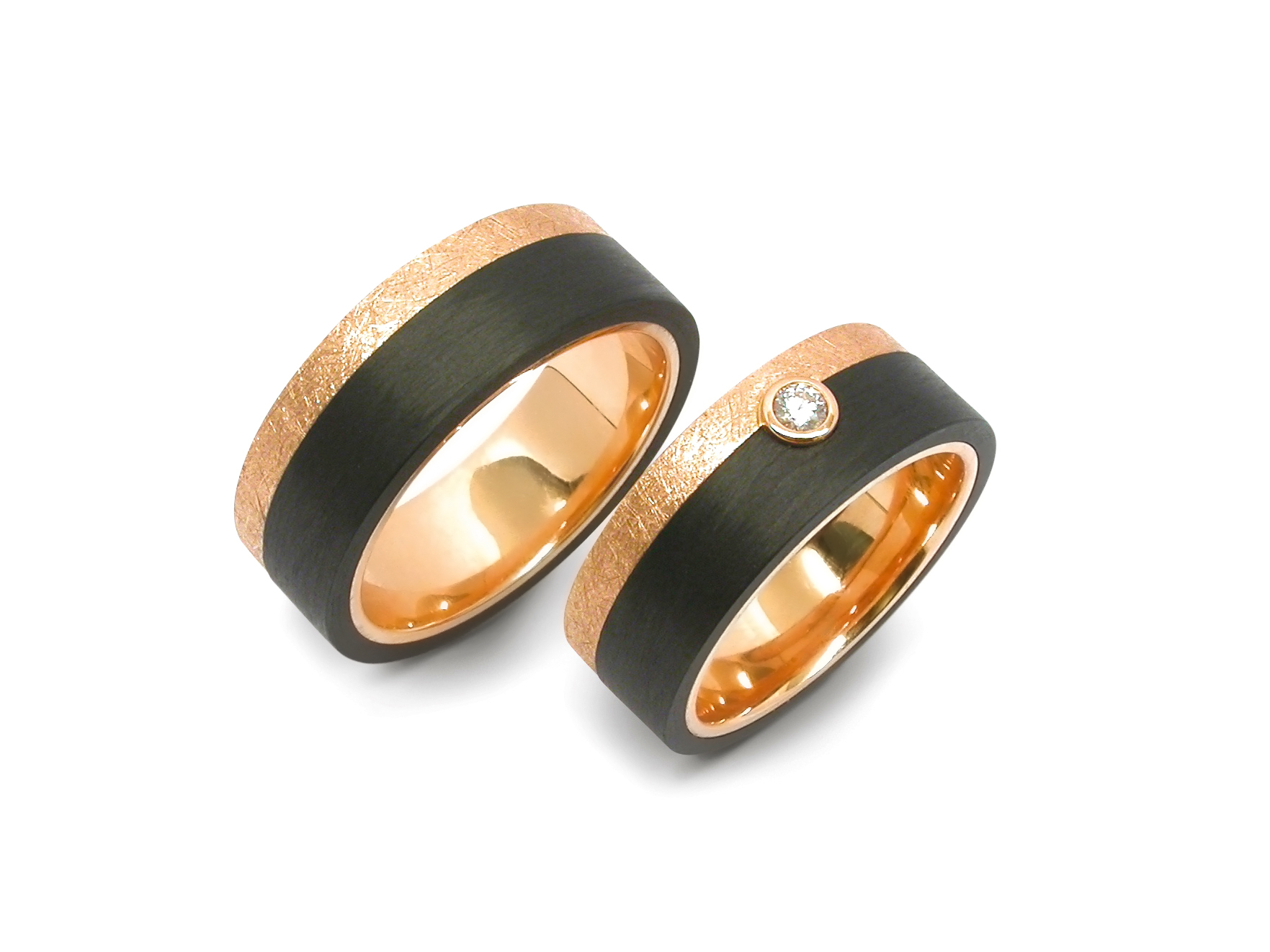 Carbon und Rotgold haben eine beeindruckende Gemeinsamkeit: ihre Wärme. Während sich Carbon angenehm warm anfühlt, strahlt Rotgold mit seiner tiefen Farbe eine ungeheure Kraft aus. Und nach kurzem Tragen nimmt es, wie die meisten Edelmetalle, unsere Körpertemperatur an.